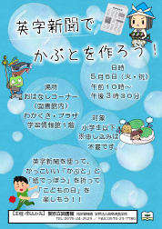 内容:英字新聞を使って、かっこいい「かぶと」と「紙でっぽう」を折って「こどもの日」を楽しもう!!