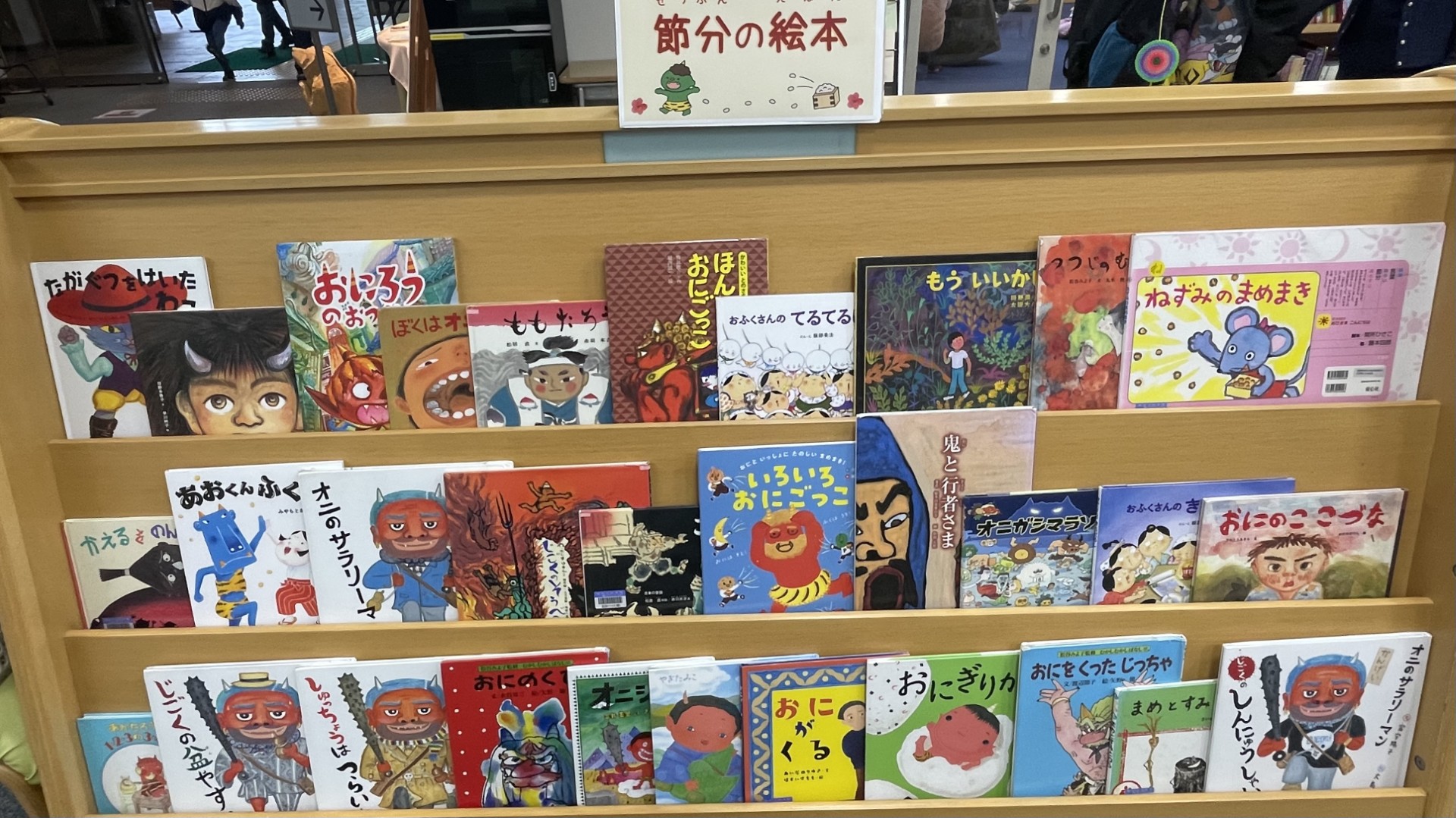 また1月8日から特設コーナーの棚で「節分・鬼のえほん」を紹介しています。